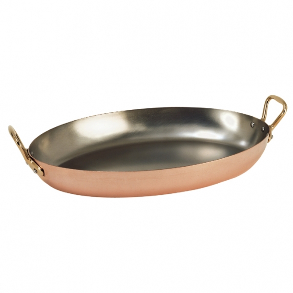 DE BUYER 6451 - Collection Inocuivre - Plat Ovale en Cuivre intérieur Inox avec anses en Bronze